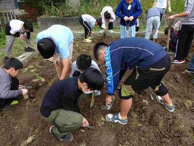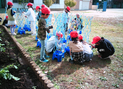 10月23日(木)、生活科の体験授業で秋野菜の種植えをしました。