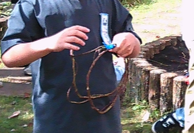サツマイモのつるを土台に、リースの輪っかを作っていきます。