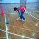 上の写真は、「ヒーローと怪獣」というゲームです。裏返しにされたマーカーコーンを表に戻すヒーローチームと、表になっているマーカーコーンを裏返す怪獣チームに分かれて戦っています。ゲームは、怪獣チームの勝利でした。