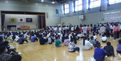 第二部は、小学生の出し物と中学生の出し物を見合いました。本校の児童は、組体操を披露しました。技が決まると拍手をたくさんいただきました。