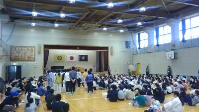 子どもたちは、体育館へ移動し、安全確認をしました。