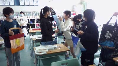 家庭科の学習では、トートバックづくりに挑戦しました。1年ぶりのミシンの扱いに苦戦しながらも、同じ班の友達と協力し合いながら作業を進め、無事完成させることができました。出来上がったトートバックを手にする子どもたちの笑顔が印象的でした。ぜひ、いろんな場面でトートバックが活躍することを願っています!
