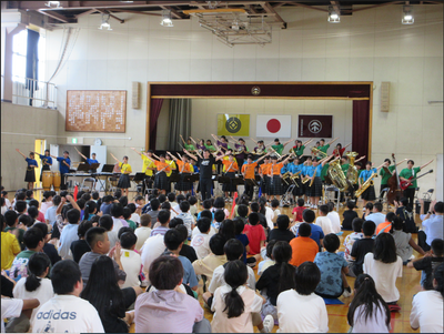 小学生が楽しめる曲目で、ダンスやスタンドプレイを見せてくれました。
