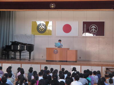 本校の3年生男子がアパート前の散らかったごみを取っていたそうです。その姿を見て、「心動かさせる立派な行動だ」とおっしゃっていただきました。