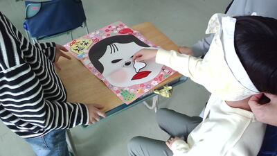 学級では、早速「福笑い」をして楽しみました。