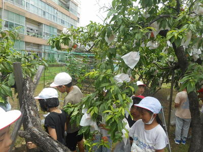 桃のいい香りを感じながらみんなで楽しく採りました。