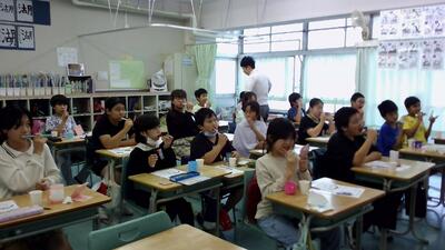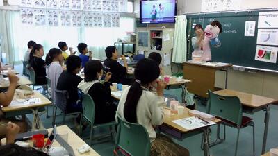 保健室の先生と一緒に、歯の健康について学習をしました。
