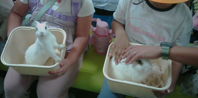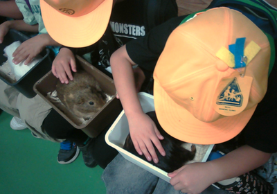 おいしいお昼ご飯を食べた後は、ふれあい体験をしました。