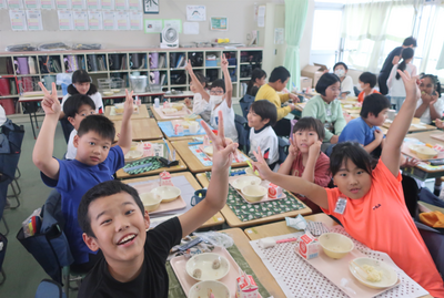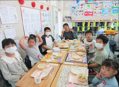 1・6年、2・5年、3・4年がペアとなり給食を食べました。